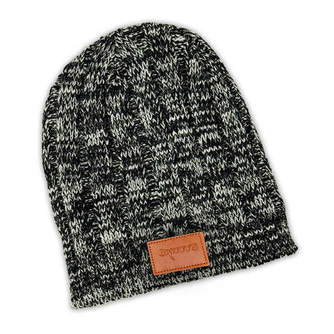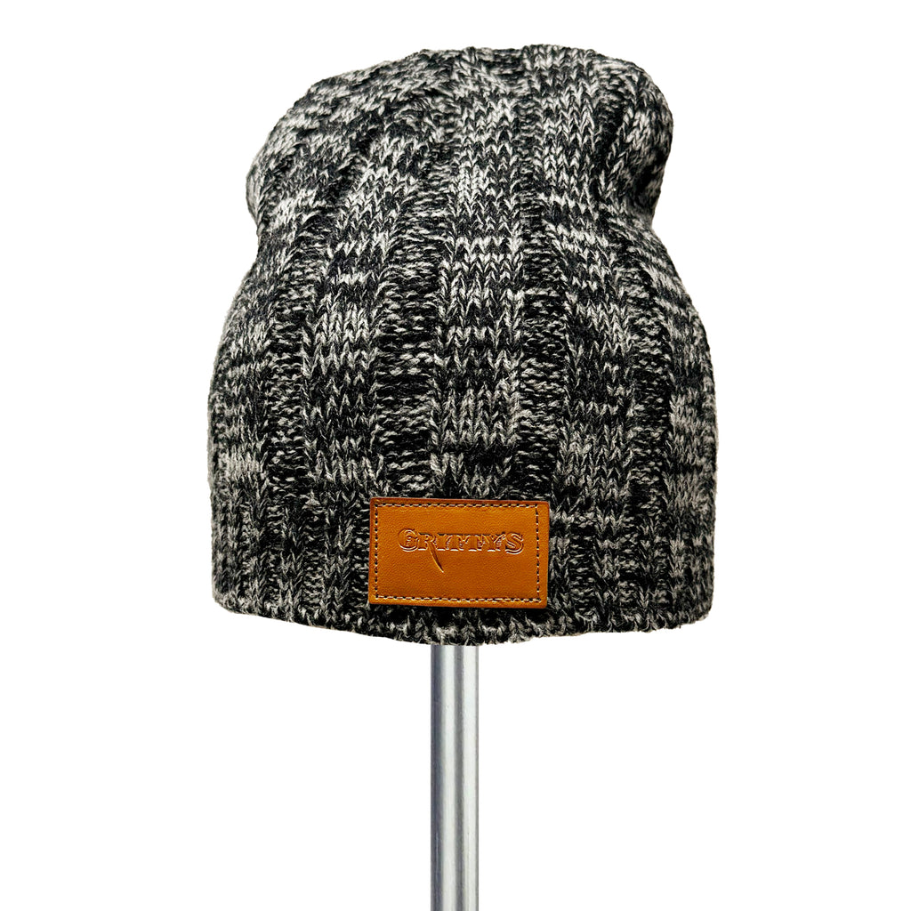 This marled beanie in black and grey features a leather patch of the Gritty’s typeface logo – and will be a staple for your fall/winter headwear!